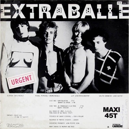 J’ai au creux de moi l’image de mes 13 ans, à Music Box, du côté de la Place Saint-Sulpice, glanant parmi les grands, bizarres & mystérieux, recouverts de badges intrigants, le premier vinyle d’Extraballe, dans l’antre des découvreurs, boite à magie en liaison directe avec l’Angleterre, à laquelle Brendon m’initiait de retour d’Allemagne : Extraballe, dont je découvrais au verso les beaux corps noirs et blancs, les alias androgynes, invitant à la « capitulation », comme on manie mots & concepts, pour le simple plaisir des sons, du bruit des guitares, de l’énergie, de l’oubli de cette misère du cœur dont on s’extraie par la furie, de la propulsion dans le grand tourbillon, avec la pondération classieuse des géants.